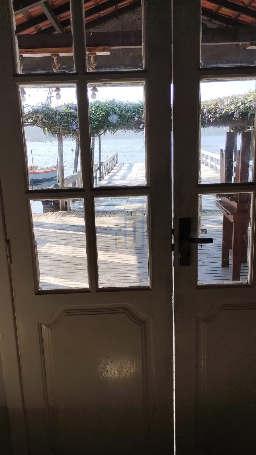 Área externa sobre dek de madeira na lagoa.