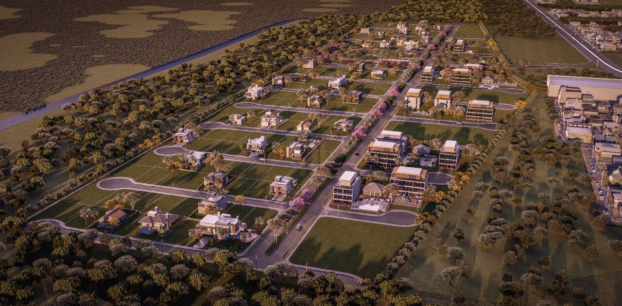 - Empreendimento dividido em 280 lotes para construção de casas e lotes comerciais de frente para a avenida.